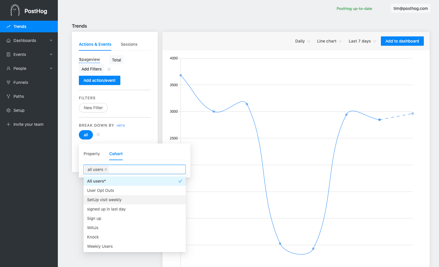 You were already able to create cohorts, but now you can use them in trends to find out exactly what your users are doing and how certain groups compare to others.